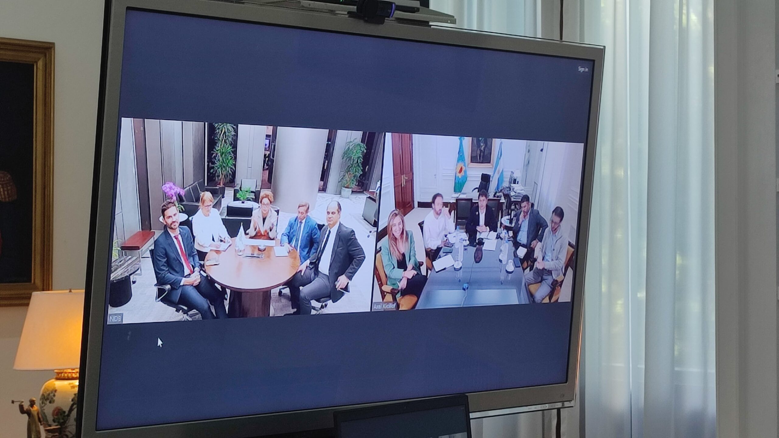 También estuvieron en la video conferencia el asesor del Gobernador, Agustín Simone; la asesora Cecilia Nicolini; y por el NBD-BRICS, hubo autoridades del banco. La cartera de inversión del NBD-BRICS incluye programas de infraestructura en transporte, energía renovable, agua y saneamiento, desarrollo urbano y proyectos ambientales, entre otros.